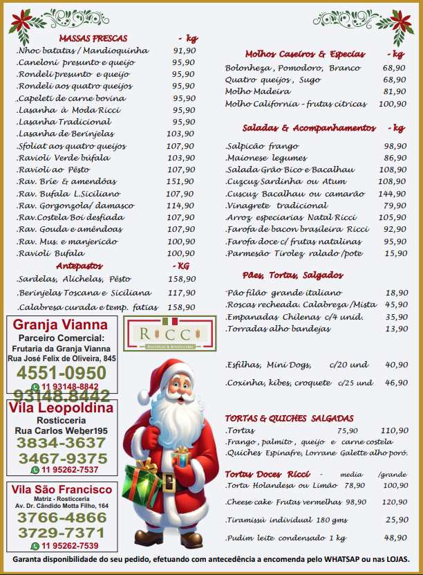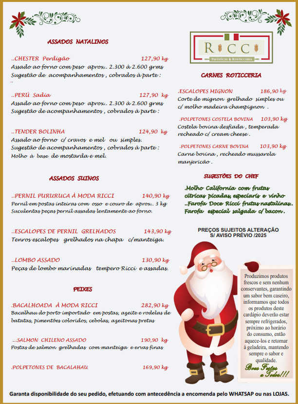 Nascido em uma família italiana na região de Vênito, herdou o gosto e interesse pela boa e caseira comida italiana, Pastifício Ricci com sede própria desde 1999. Nossas massas são fabricadas de forma artesanal e semanal, temos roticceria completa com carnes e assados. Cozinhar é um ato de amor, da minha família para a sua. Aproveitem!!! Paulo Ricci